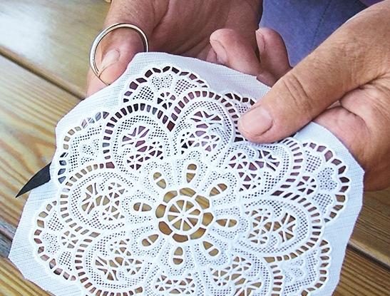 5. Из виниловой салфетки вырежьте красивый кружевной фрагмент.