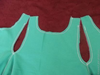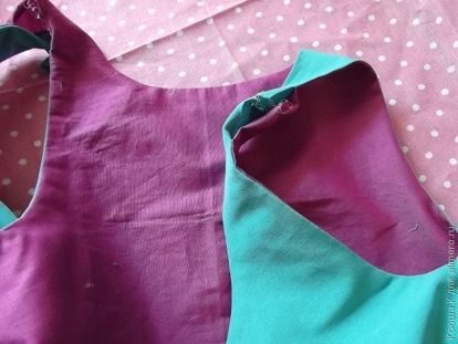 Выворачиваем сарафан и сшиваем вместе плечевые стороны передней части изделия с задней частью.