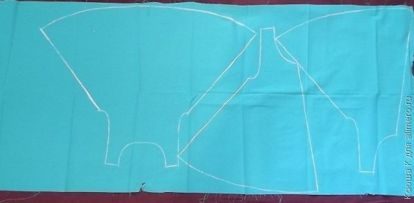 Спереди сарафан будет завязываться на ленточке вверху, значит, нужно передние части сарафана сделать посередине шире, чтобы одна сторона изделия накладывалась на другую.