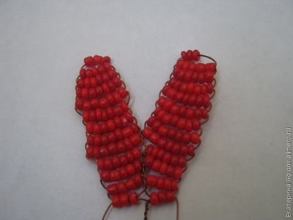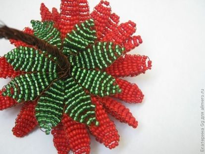 Серединка готова. Делаю маленькие лепестки из красного бисера.