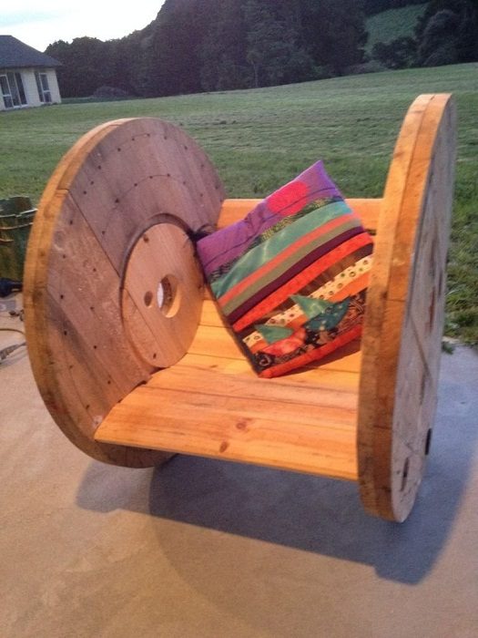 Если плетеное кресло приобрести не позволит семейный бюджет, в этом случае опять выручит смекалка и творческое мышление. Используйте вторсырье – катушку от кабеля или старую бочку.