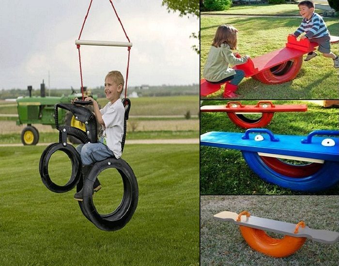Как из автомобильных покрышек сделать оригинальную детскую качалку.