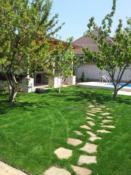 Строительство дорожек начинается с разметки. У дачи или участка, наверняка, уже есть полюбившиеся вытоптанные тропинки. Лучше всего их и использовать для разметки. Дорожка должна быть по всей длине одинаковой ширины и ровной.