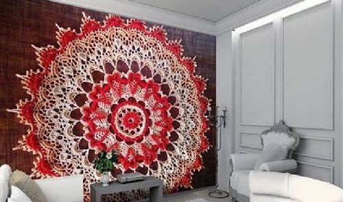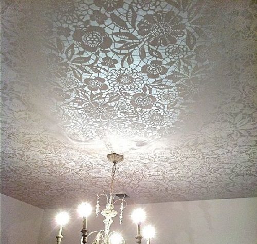 В современном декоре интерьера используют не только и не столько вязаные кружева, но и кружевные обои, изящную кружевную роспись потолка и пола. Красота, не правда ли?