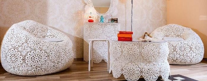 Кружевная мебель от Marsel WandersИз кружева можно сделать и объемные вещи. Голландский дизайнер Marsel Wanders создал мебель из кружева: изящные журнальные столики, кресла и напольные вазы.