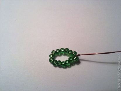 1.На проволоку 40 см набираем 14бисеринок и соединив две проволоку скручиваем