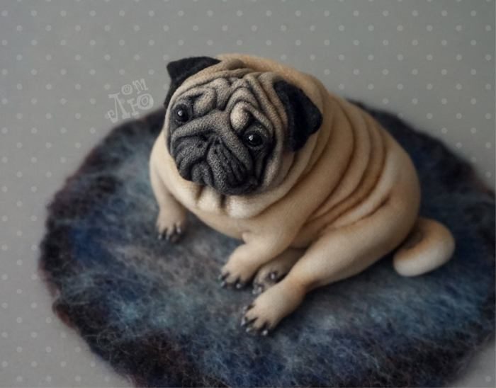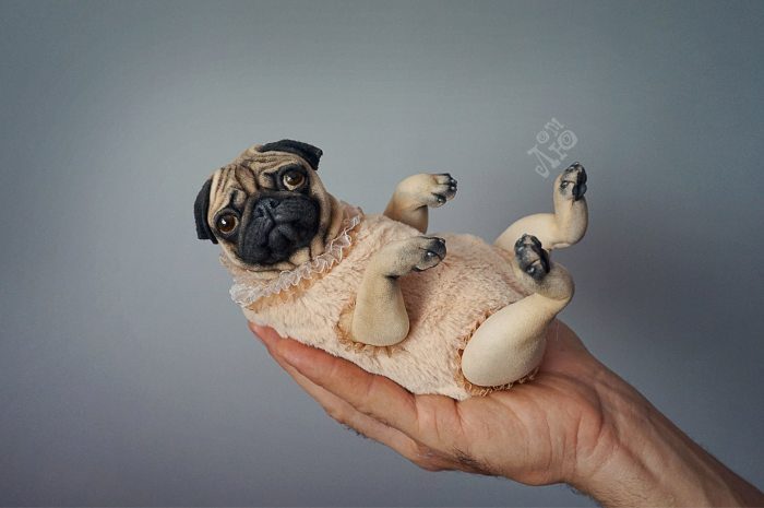 Каждая такая фигурка арт-мопса от от Любови Мошак — это уникальное произведение прикладного искусства, которое трудно отличить от реального мопса.