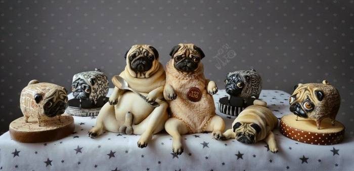 У каждого персонажа сделаны совершенно живые глаза и коготки, а «рисунок складочек» строго индивидуален, поскольку фигурки часто копируются с реальных мопсов по заказу их хозяев.