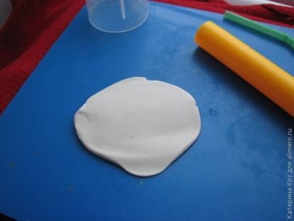 Раскатываем скалкой для пластики. Если такой у вас нет, подойдет любой дезодорант цилиндрической формы.