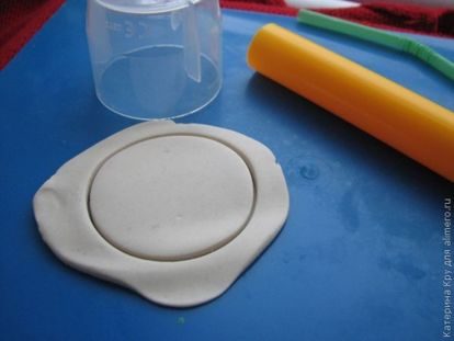 Затем, с помощью круглой формы выдавливаем кружок. Можно использовать крышку от бутылки или баночки крема (смотря какой размер серьги вы хотите получить).
