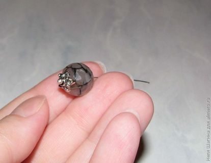Затем берем бусинку 12 мм, одеваем её вслед за шапочкой.