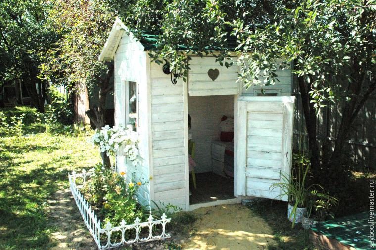 Хочу поделиться с вами собственным опытом в создании уютного и очень милого игрового домика для детей. А собран он почти из «подножных» материалов, в основном, это остатки от ремонта и стройматериалы б/у, которые на даче обычно выкидывают на костер.