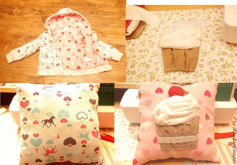 Подушки-пироженки. Есть такие детские вещи, расставаться с которыми не хочется, невзирая на разум и их абсолютную непригодность. Поэтому мне показалась идея дать им такую вторую жизнь наиболее подходящей. И пользу приносят, и глаз радуют, но главное, продолжают сохранять хорошие воспоминания :)