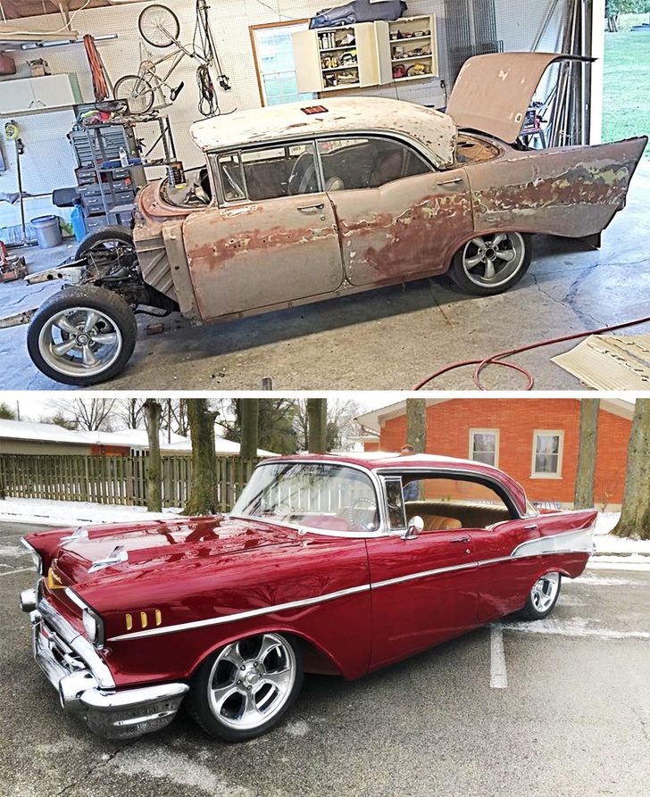 Автомобиль Chevrolet Bel Air 1957 в свое время считался самой дорогой моделью Chevrolet, однако за 30 лет простоя в гараже Фреда он превратился в ржавую развалину. Чтобы подарить ему новую жизнь, Кэму пришлось потрудиться. Он несколько лет откладывал деньги, а когда понял, что собранной суммы все еще не хватает, продал собственный автомобиль. Впрочем, согласно словам Кэма, «оно того стоило».