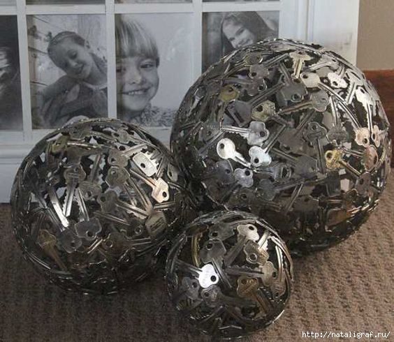 Вот на примере ниже показано, как просто согнуть-изогнуть ключ. Если у вас в доме есть такая штуковина — вы счастливица, потому как легко сделаете и бутылку из ключей и шар. Только гнуть нужно нежно и аккуратно для красивых и не сильных изгибов