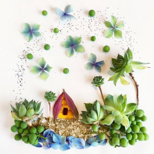 Художница Бриджет Бет Коллинз (Bridget Beth Collins) из Сиэтла, также известная как Flora Forager, придаёт термину «цветочные композиции» новое значение, используя найденные цветы и природные материалы для создания очаровательных иллюстраций, вдохновлённых природой.