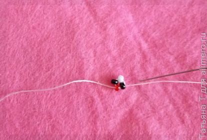 чешский бисер №10 красный, белый и черныймононить или белая нить для бисероплетениябисерная игласхема плетения узоров
