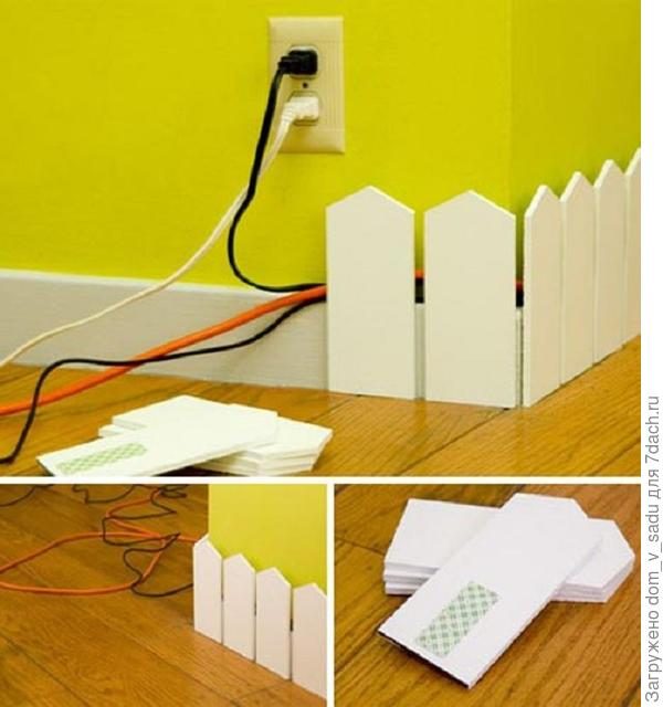 Обшивка угла деревенским «заборчиком» подарит задорное дачное настроение, а также спрячет и «направит» в нужное место все электрические шнуры.
