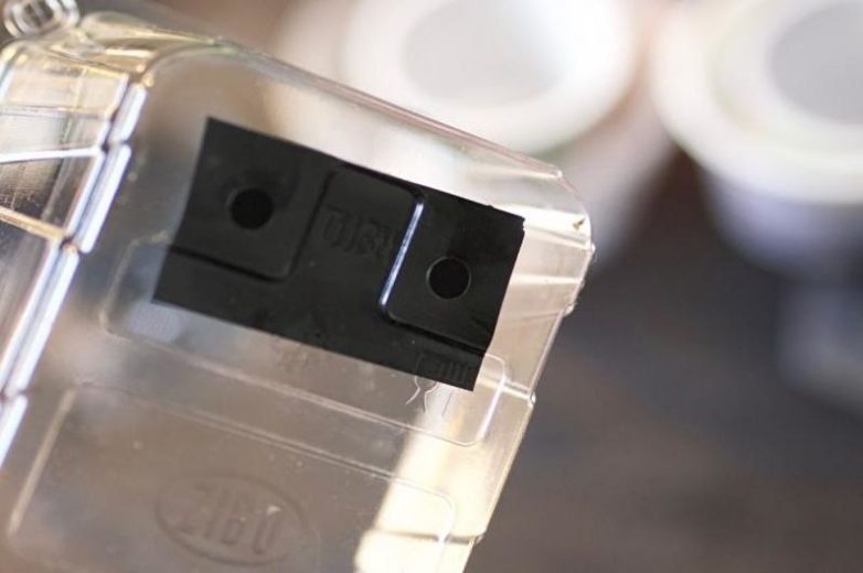 Дно емкости покройте пленкой, так вы избежите порчи чемодана из-за жидкости. Пленка крепится степлером для мебели по верхнему краю.