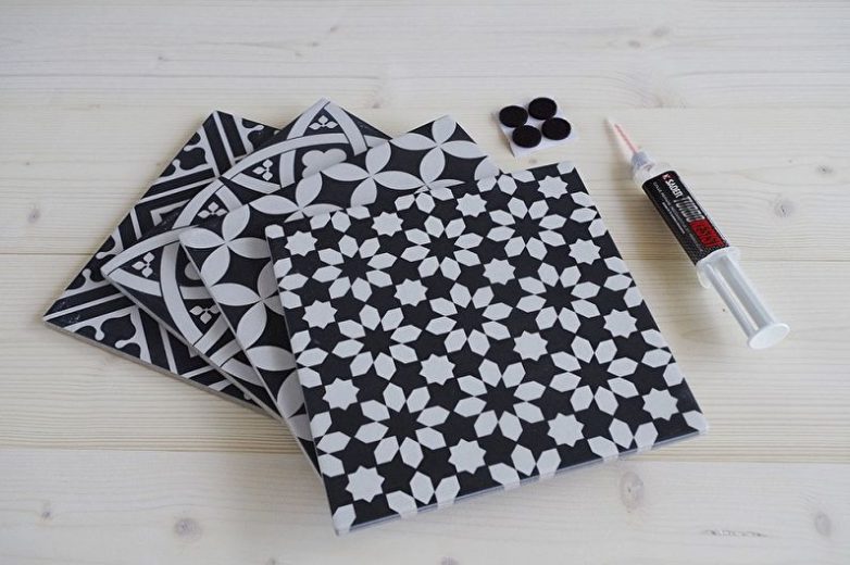 Запаситесь такими материалами: клей (пистолет или момент), 4 плитки в одном размере, 4 шт. войлока.