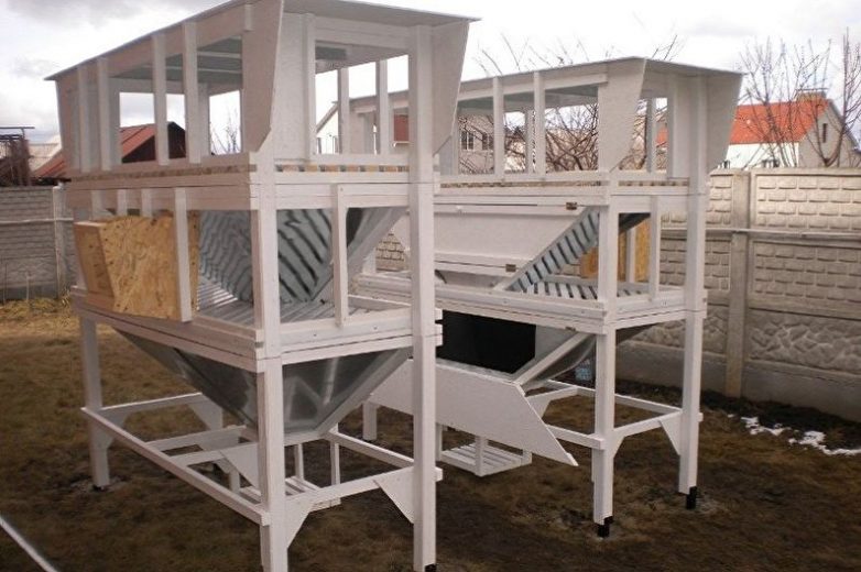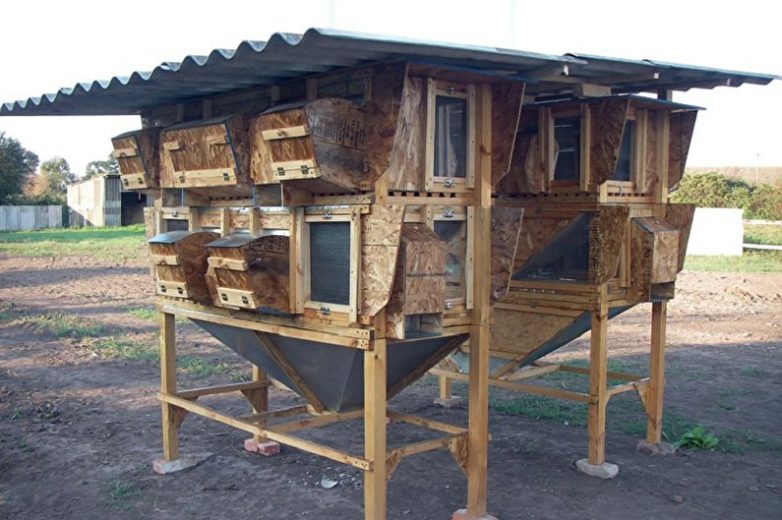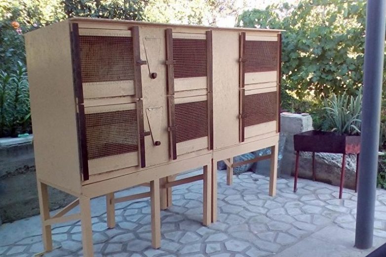 Особи, разводимые в хозяйственных целях, зачастую располагаются в многоэтажных конструкциях с большим количеством раздельных вольеров. Такую клетку можно как приобрести в готовом виде, так и построить самостоятельно с применением доступных средств.