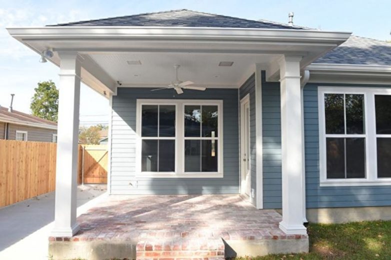 При наличии высокого фундамента у сооружения необходимо оформить крыльцо, используя ступеньки. В результате терраса с зоной отдыха будет находиться на определенном возвышении, если сравнивать с уровнем земли. Оформляйте ступеньки и покрытие пола камнем или бетоном, деревом с пропиткой или кирпичом, чтобы обеспечить защиту от воздействия влажности или насекомых.