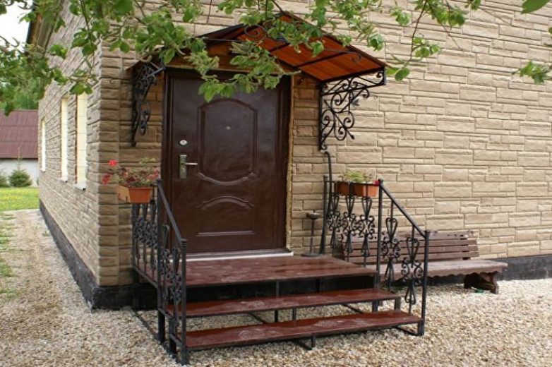 Это традиционный вид оформления входа в здание. Его можно совместить с навесом или козырьком, а также украсить различными конструкциями дополнительно, чтобы композиция смотрелась завершенной.