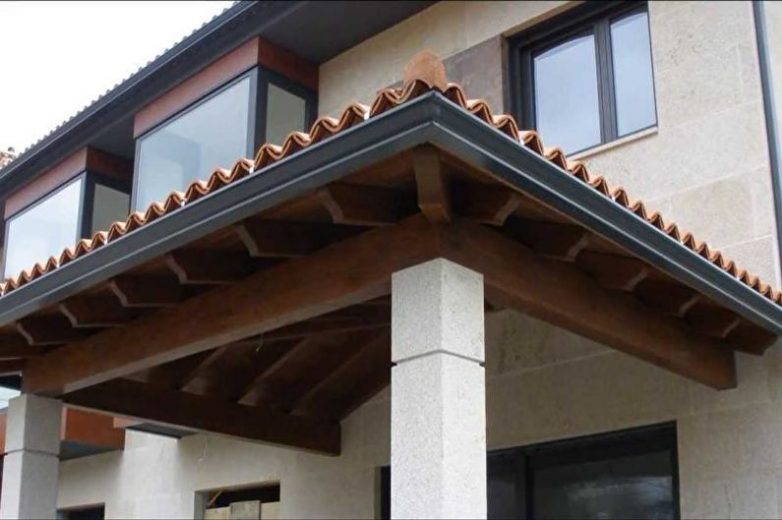 Если участок перед входной дверью позволяет организовать место для отдыха, то можно обустроить открытую или закрытую террасу. На ней могут находиться качели для детей, или же просто это будет место для комфортного пребывания у дома, и возможность защититься от плохих погодных условий.