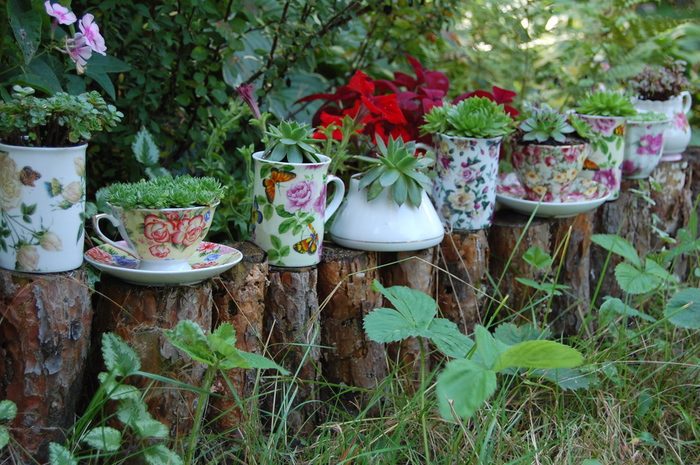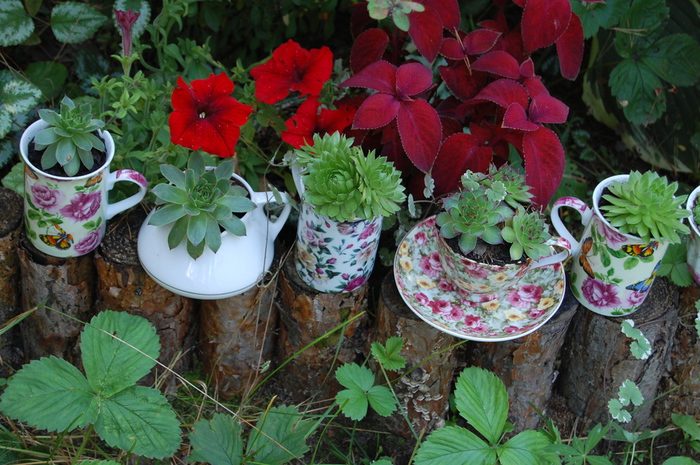 Не спешите выбрасывать надоевшую посуду, она может стать оригинальным элементом декора в вашем саду!!!