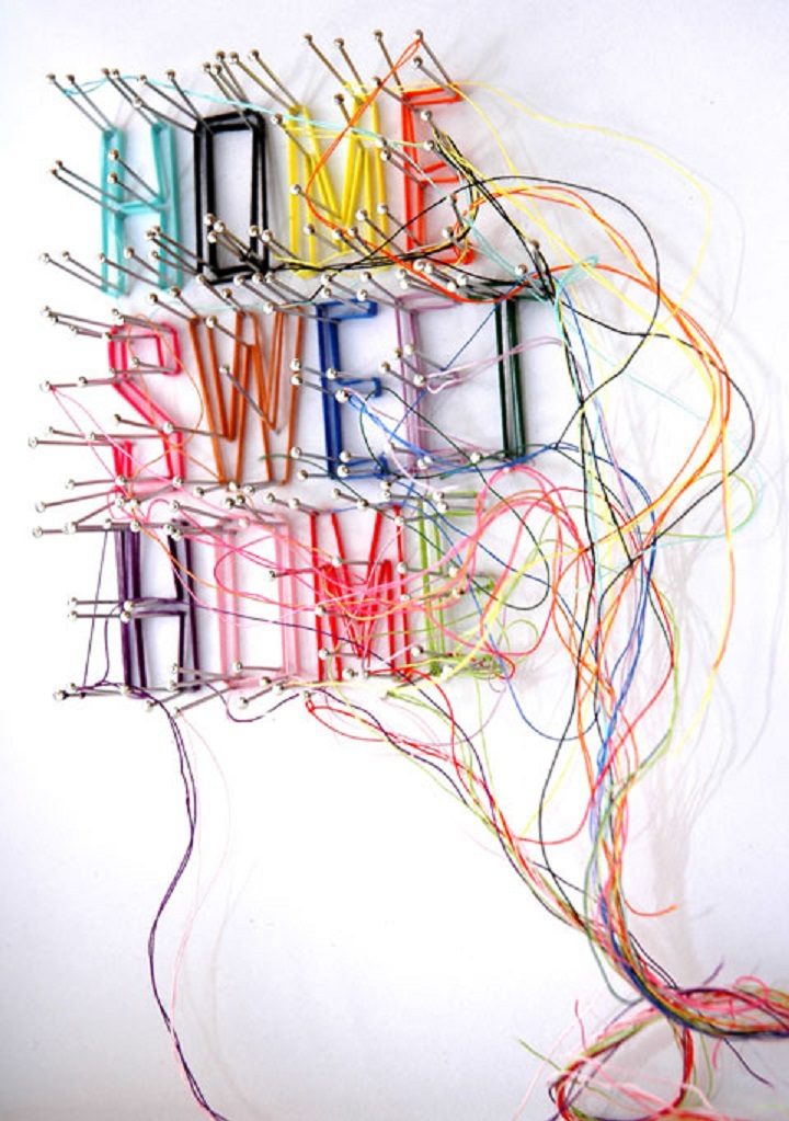 32. Обернуть цветными нитками слово Love из проволоки