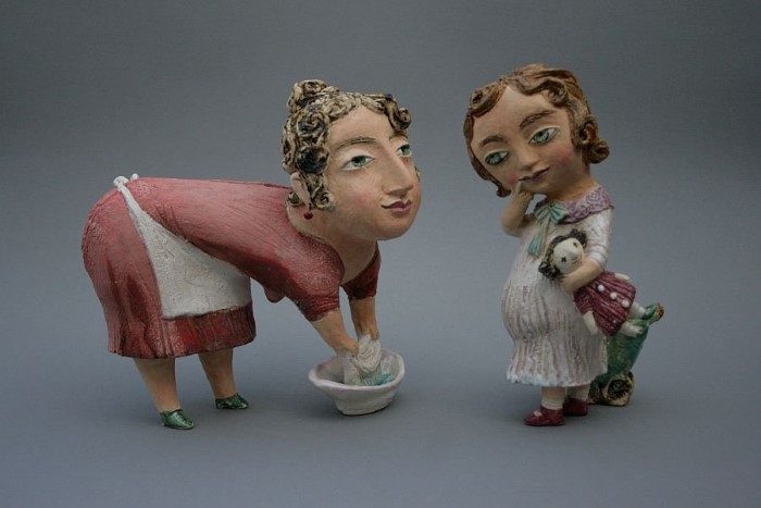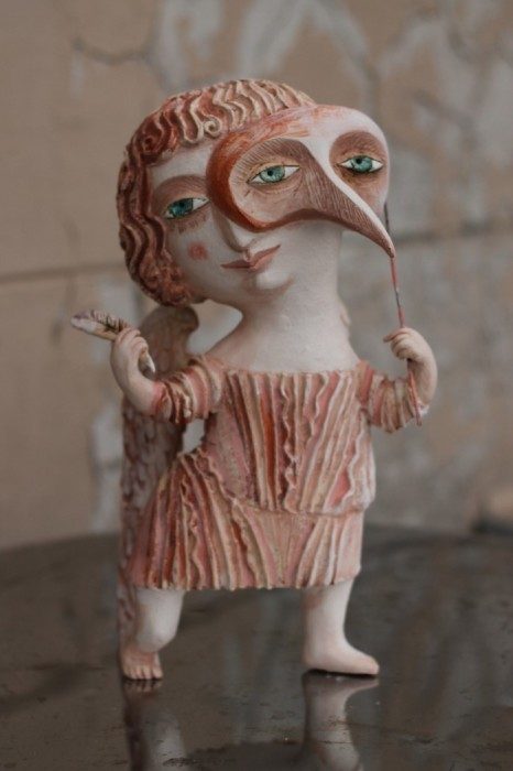 По словам Эли Ялонецкой, она вот уже двадцать лет работает с хрупкой, но достаточно долговечной керамикой, создавая миловидные статуэтки и фигурки с ангелочками, забавными дамочками, симпатичными мужичками и зверушками.