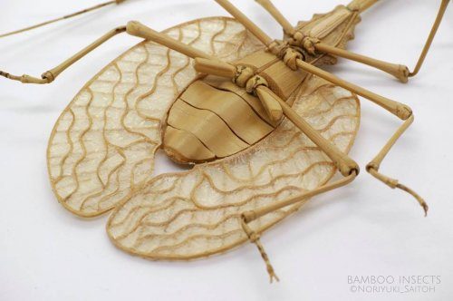 Нориюки Саито (Noriyuki Saitoh) создаёт скульптуры насекомых в масштабе 1:1, изготовляя крылья, конечности и усики каждого из них из тонко нарезанного бамбука.