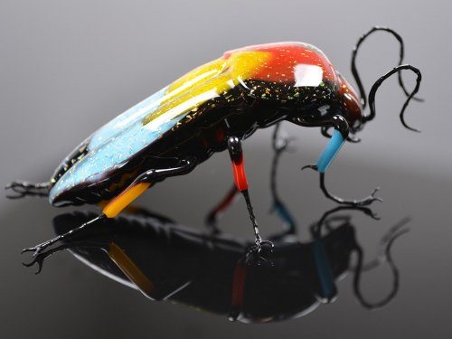 Художник по стеклу Уэсли Флеминг (Wesley Fleming) создаёт анатомически правильные скульптуры всевозможных и хорошо известных насекомых в натуральную величину. Красочные существа достаточно малы, чтобы поместиться на кончике пальца.