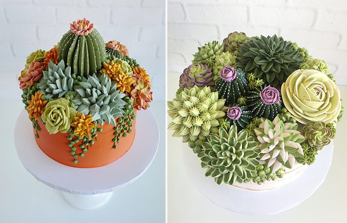 Но, калифорнийская мастерица Лэсли Виджил (Leslie Vigil), ломая все стереотипы о банальных кремовых цветочках, создаёт роскошные торты-суккуленты, которые не просто хочется съесть, а и оставить на память хотя бы в виде снимков.