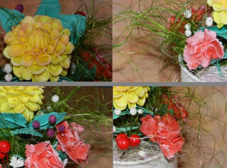 Флористическая композиция из поздних осенних цветов украсит ваш дом, станет необычным подарком для друзей и еще раз напомнит старую, но актуальную истину — у природы нет плохой погоды и нелюбимого времени года. А мы переходим к несложному мастер-классу «Нежный букет». Я включила в него желтый георгин, розовые гвоздики и веточки снежноягодника. Особенность этой композиции в том, что для нее не понадобятся дорогостоящие молды и формы. Мы все сделаем с помощью минимального набора инструментов.