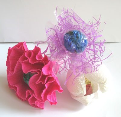 Для изготовления любых бумажных цветов технология оформления конфет одинакова.