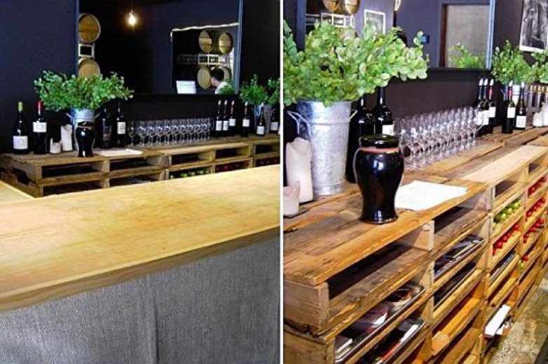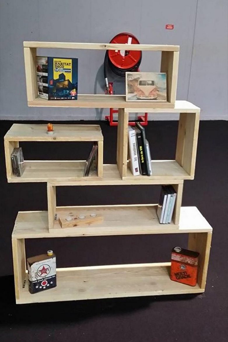 В прихожей на такой конструкции из поддонов можно хранить обувь, а на кухне — посуду или столовые приборы. При этом деревенский характер подчеркнут салфетки и полотенца. Поставленные друг на друга глубокие паллеты образуют удобные стеллажи, которые впишутся в гостиную. Если обустроить их закрытыми дверцами, а также покрыть краской, готовые изделия будут выглядеть как покупные модели.