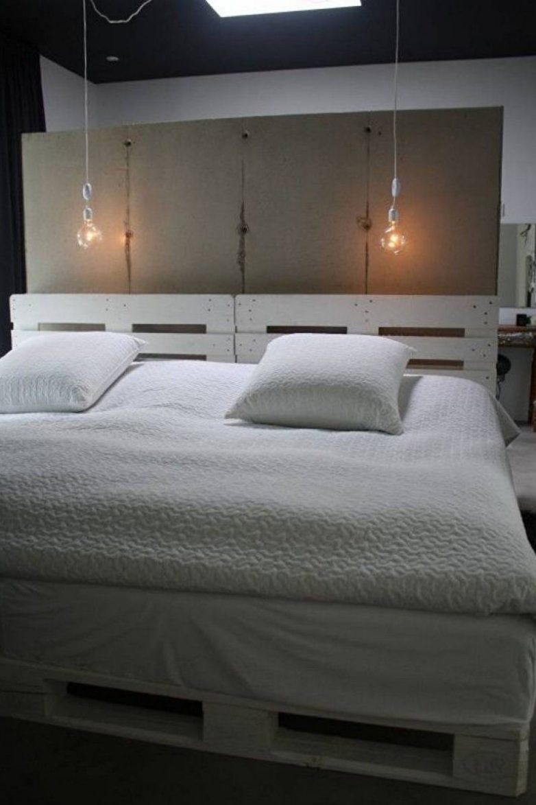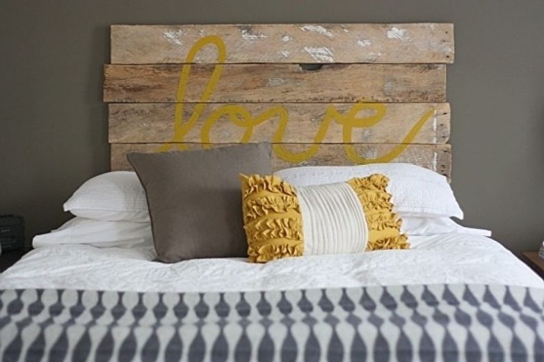 Для интерьера в стиле лофт и кантри такая деталь, как изголовье кровати из паллет, будет выглядеть оригинальной «изюминкой» комнаты. Ее можно оставить в первозданном виде или обтянуть тканью. Горизонтальные доски подойдут для бытовых мелочей.