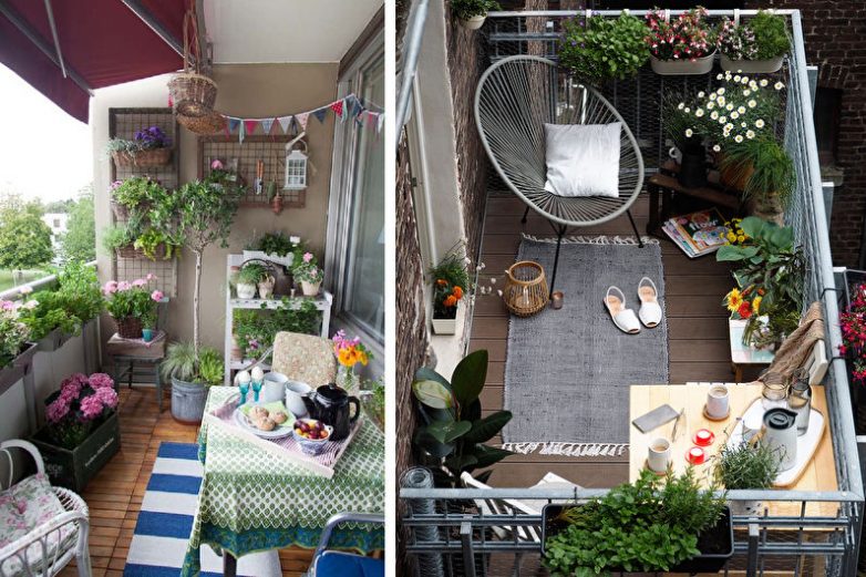 Идеальная планировка для узких балконов — когда мебель расставлена по углам, в то время как центральная часть предлагает свободу передвижения. Если помещение открытого типа, постарайтесь подобрать легкую, мобильную мебель (например, кресло-мешок), а декор свести к минимуму.