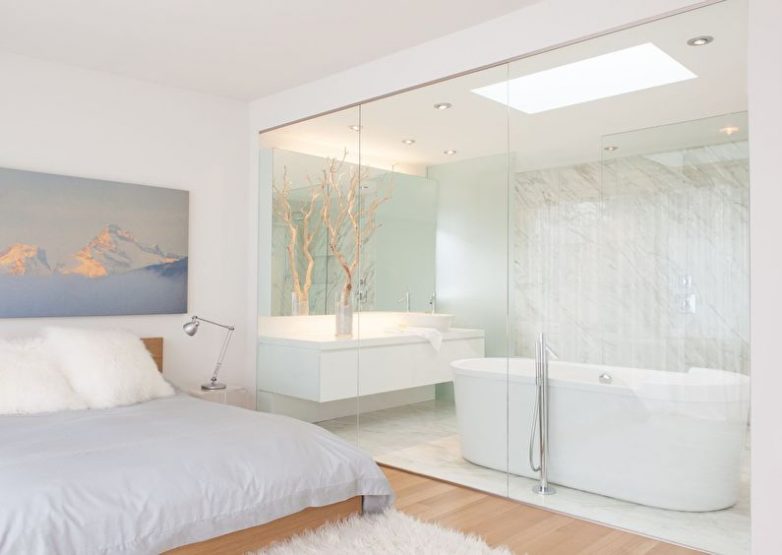 Пожалуй, единственный недостаток стеклянных перегородок — опять-таки их прозрачность. Не всем понравится открытость личных комнат, особенно если это спальня или ванная. К тому же, проникающий свет, например, из гостиной, может мешать спать. В какой-то степени большей уединенности можно добиться с помощью матовых перестенков, плотных штор или жалюзи.