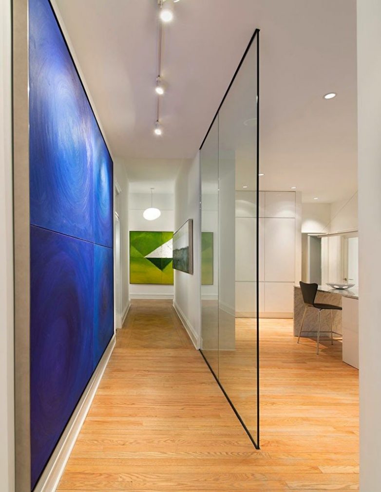 В большинстве квартир прихожая и коридор наглухо изолированы от попадания солнечных лучей. Установка стеклянной перегородки вместо одной из внутренних стен или хотя бы прозрачная раздвижная панель в расширенном дверном проеме обеспечит хорошее естественное освещение, создавая приветливую атмосферу прямо с порога.