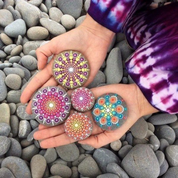Красивые мандалы на круглых камнях