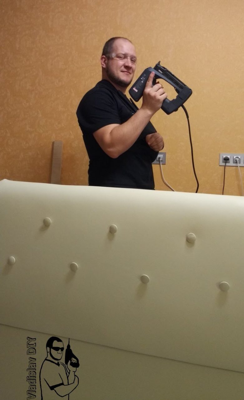 Не найдя ничего подходящего из готовых решений, прикинул, что кровать — не самое сложное из мебели, а женщина сказала, что обтянуть вообще не проблема, решили делать сами!