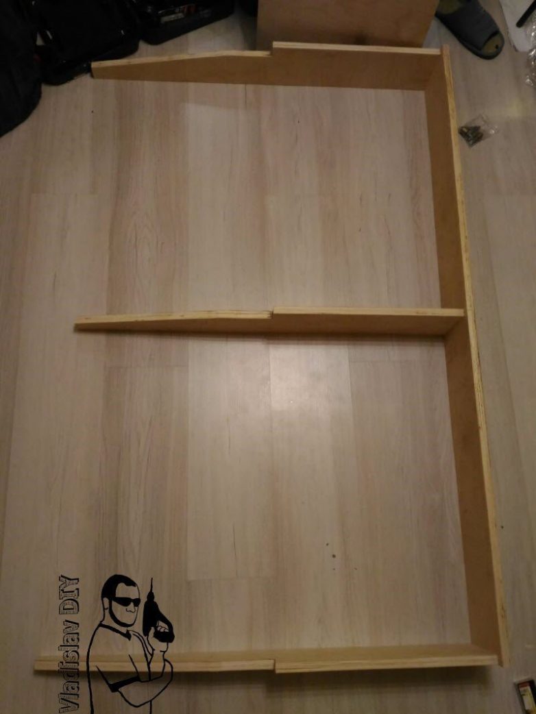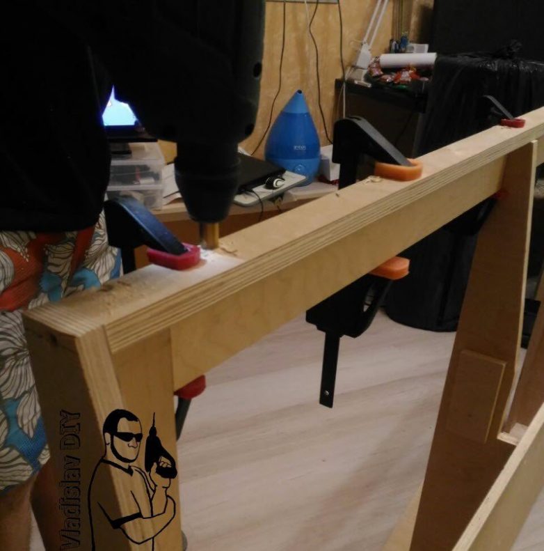Довыпилив лобзиком недостающие контуры, и обогнав фрезером (чтобы были идентичные детали), начал собирать: засверливание по месту, зенкование и желтыми саморезами стяжка. Без шкантов и клея: жесткости каркаса должно хватить с избытком!
