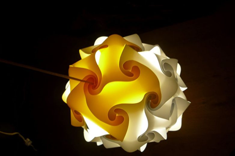 Кто не увлекался в детстве оригами, конструируя зверюшек или сложные модульные изделия из бумаги? Теперь можно применить свои умения для более практических целей. Впрочем, даже люди, которые впервые столкнулись с этим занятием, тоже смогут легко освоить его и изготовить оригами-плафоны для люстры своими руками.Это лаконичные конструкции разных геометрических форм, которые идеально впишутся в современный интерьер. Не рекомендуется использовать очень прочную бумагу, так как она плохо пропускает свет.