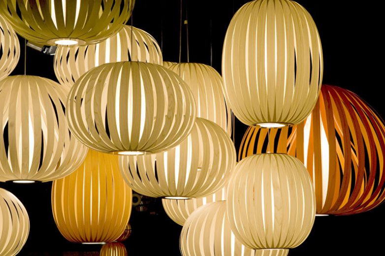 Это лаконичные конструкции разных геометрических форм, которые идеально впишутся в современный интерьер. Не рекомендуется использовать очень прочную бумагу, так как она плохо пропускает свет.