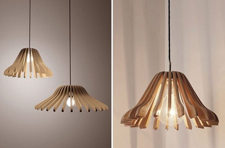 При создании плафона своими руками учтите, что использование обычной лампы накаливания — не самая удачная идея. Лучше остановиться на энергосберегающих лампочках, которые не так сильно нагреваются и, соответственно, не нагревают близко расположенные детали, обеспечивая тем самым безопасность. Кроме этого, они достаточно экономны, что позволяет не тратиться на электроэнергию, а также долговечны.Выбирая материал для плафона, ориентируйтесь как на эстетические свойства, так и на технические характеристики. Во-первых, это должны быть экологичные, желательно, натуральные основы, которые не будут распространять небезопасные вещества при минимальном нагревании.