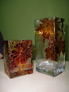 Декорировать витражными красками можно практически любой стеклянный предмет обихода, от зеркала до вазы. Предметы, украшенные росписью витражными красками, можно мыть, протирать и споласкивать, однако их нельзя замачивать в воде на долгое время.