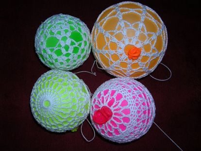 Еще одна идея в новогоднюю копилку – ажурные елочные шары, связанные крючком.