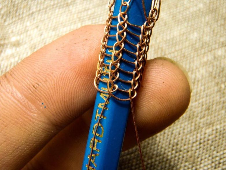 Таким образом и продолжаем плетение. Когда покажется достаточно, снимаем с карандаша.